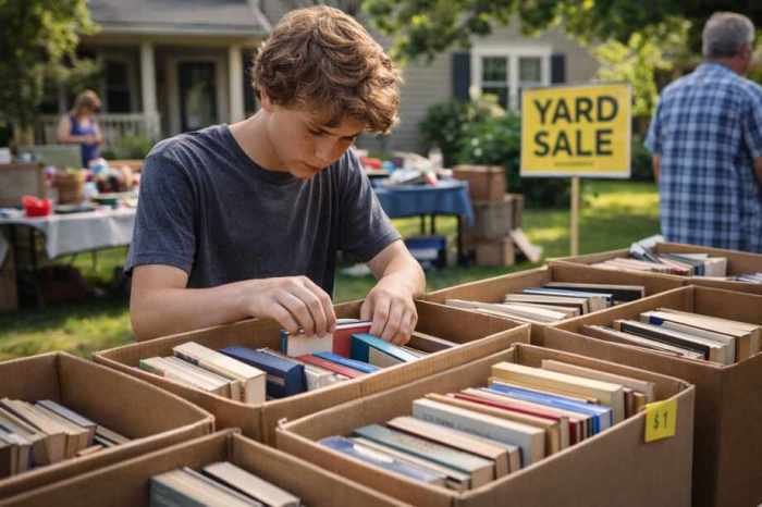 A pimple-faced teenager is rifling through boxes of books at his neighbor’s yard sale. He looks over his reading list for the upcoming school year. His neighbor, a dangerous sounding woman wearing a winter jacket with a fake fur collar and metallic copper makeup, haggles over the price of an old toaster oven. Momentarily distracted … Continue reading Yard Sailing